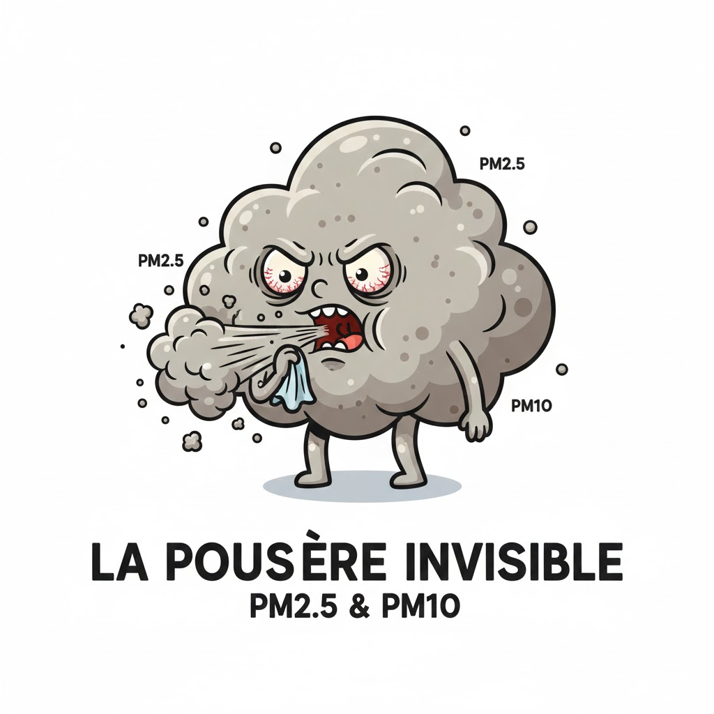 - PM₂.₅ : Pénètrent profondément dans les poumons et atteignent la circulation sanguine